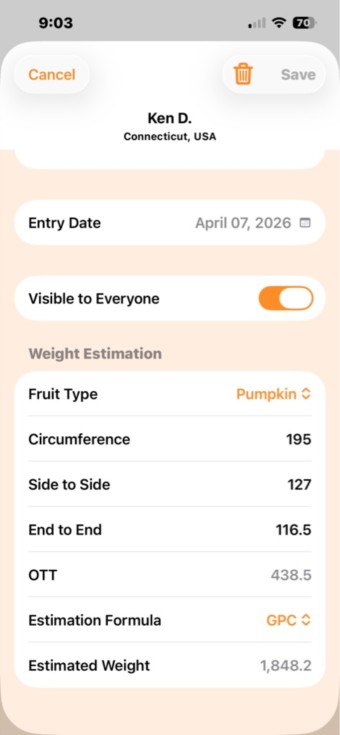You can keep track of your fruit in your diary with Private entries and then make them public after the weigh-off if you would like.