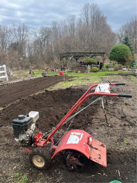 Man we've had some nice spring weather...got the amendments halfway tilled in and realized I forgot to put the cables in.