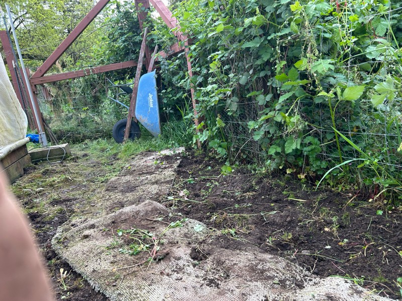 I started weeding out the strip behind the greenhouse.