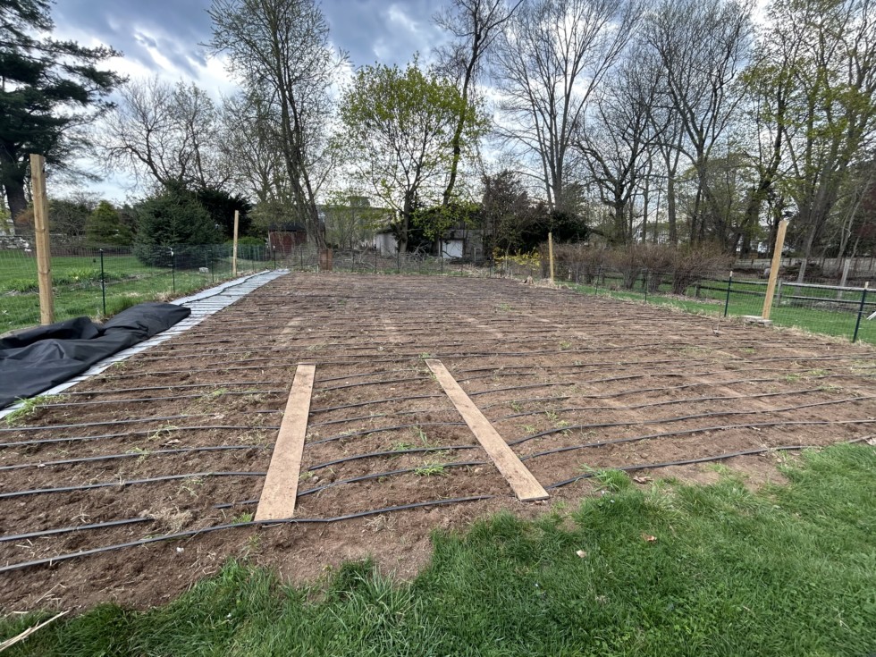 After broadforking I noticed the ground surface was too uneven to put my white fabric down so I took a loop hoe and flattened out the patch surface. This probably took 3 hours. This hobby is not for people who value leisure! Or time! Or money!