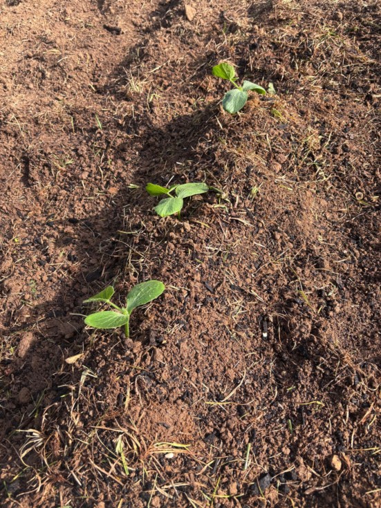 We're finally in the ground! I transplanted all five of my little seedlings and gave them their first plant food! Pictured is the hill with the most robust of my seedlings, not pictured is my smaller hill with my least robust seedlings. I sort of did some trials with my seeds. I originally ordered my AG seeds from Gurney's since, at the time, Howard Dill wasn't shipping to the US. Then, several months later, we were at Lowes getting supplies for the patch and found some AG seeds in a smaller packet there. I was a little peeved at myself cause I never even thought to check my local areas for these specific seeds. My husband convinced me to buy a packet and just see if they were the same. I noticed a pretty big difference when I opened the seeds a couple weeks ago to plant them, the Lowes AG seeds were a good bit smaller, browner and flatter and the Gurney's seeds were much larger and fatter. Obviously they're coming from the same place so it's probably just a coincidence that they were this different from each other, but I kept them separated so I could see which one seeded better. The Gurney's seeds sprouted quicker and made more robust plants, the Lowes seeds had a hard time coming out of their seed casings and made thinner but taller plants. I planted them in separate hills and the Gurney's are the ones that are pictured and transplanted easily, the Lowes seeds were pretty limp when I planted them and don't look as viable, but maybe they'll perk up in the next few days, just thought it was worth noting. I planted my backup seeds this morning and did the same thing, planted two Lowes seeds and three Gurneys seeds to see if I get the same results!