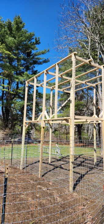 Spent the day yesterday putting up a new trellis for long gourds. She's not plumb plumb but she is plumb some! Other then the pt timbers everything else was recycled from the dump.